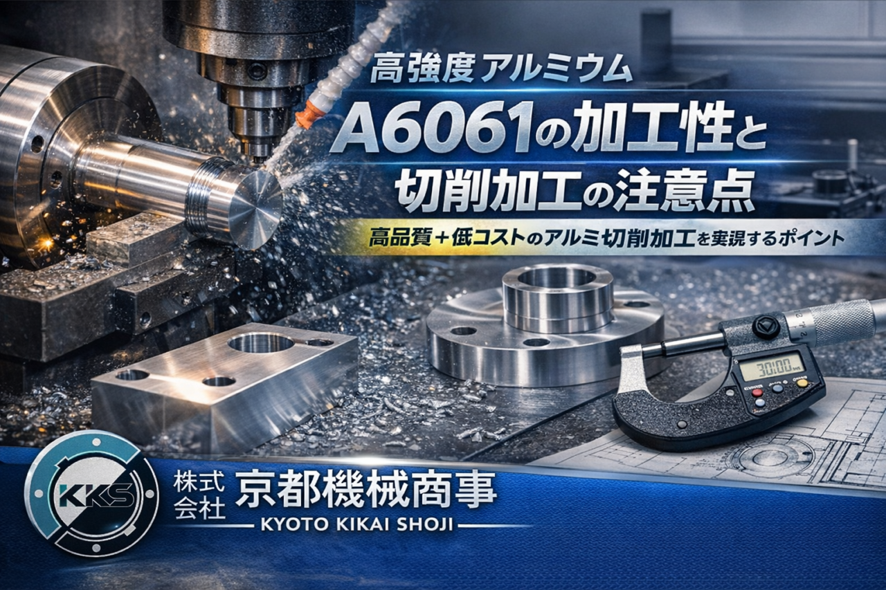 本記事では、京都機械商事がA6061の材料特性から切削加工の基本、旋盤加工・マシニング加工の注意点、A5052やA7075との違い、量産時のコスト削減の考え方、調達時に押さえるべきポイントまで、実務目線でわかりやすく解説します。